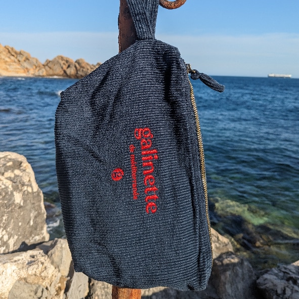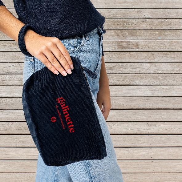 Pochette brodée écoresponsable en velours côtelé