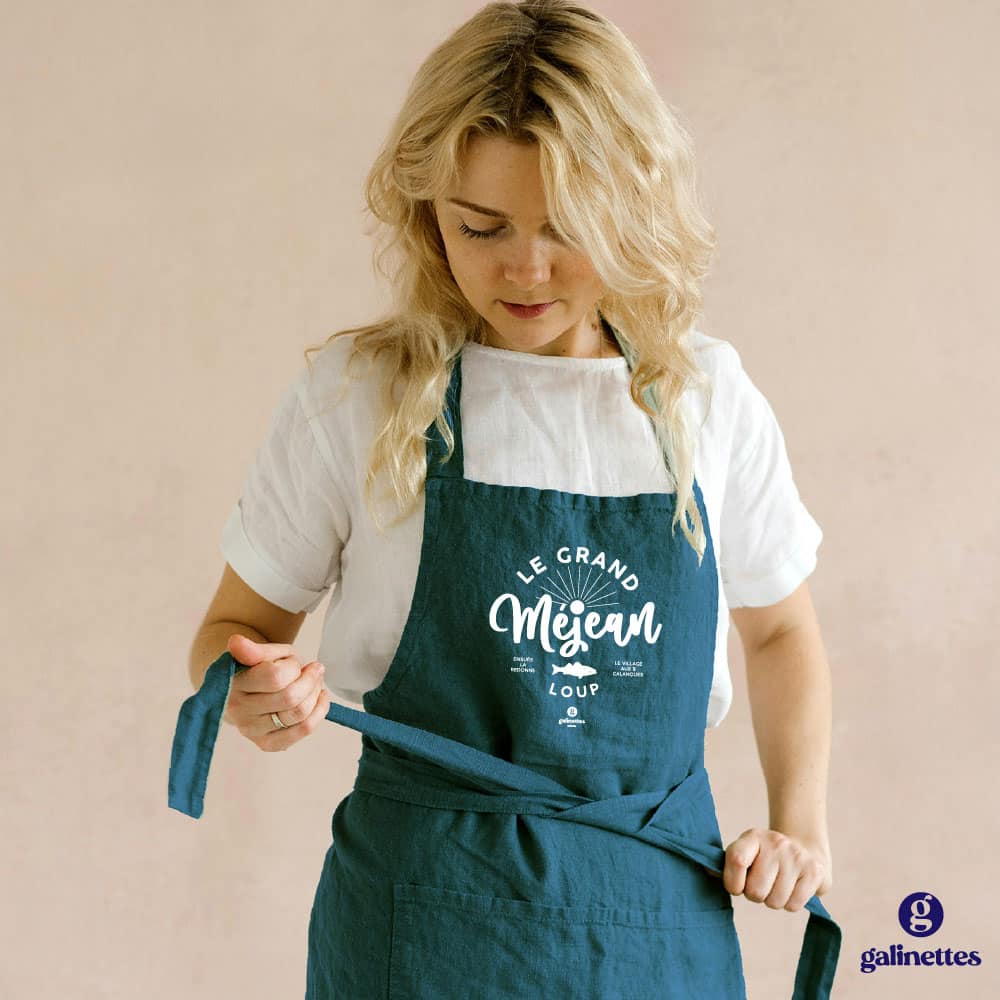Tablier coton lavé – Le Grand Méjean Loup- Idée cadeau Côte Bleue
