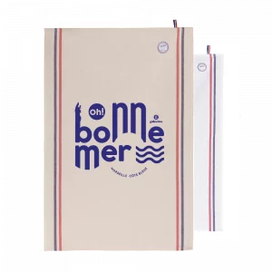 Torchon origine France et côte bleue garantie : imaginé dans les calanques d’Ensuès la Redonne, tissé en Bretagne et sérigraphié dans le village voisin du Rove.